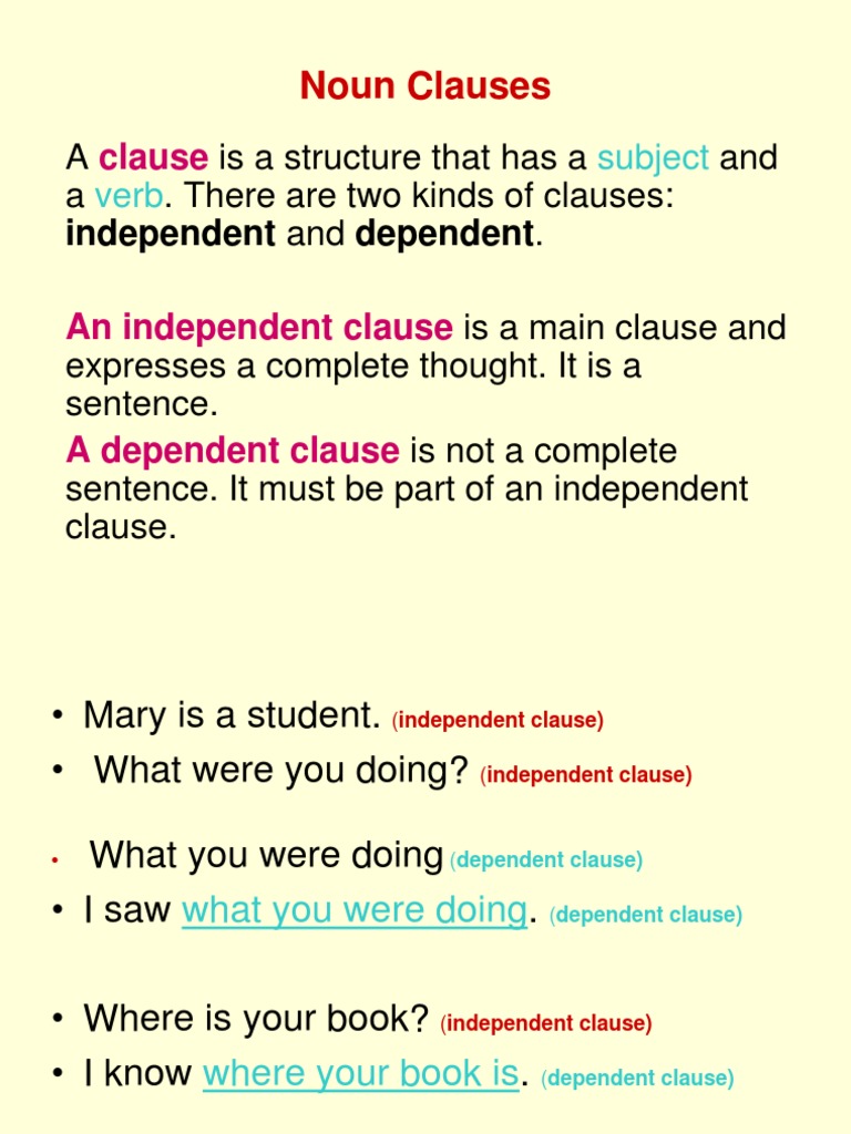 In this lesson, we'll look at the dependent clause and its. There are instances wherein we would like to name something but a lone word. Noun clauses consist of a clause preceded by a subordinating conjunction. A noun clause is a clause that functions as a noun. This page has lots of examples of.